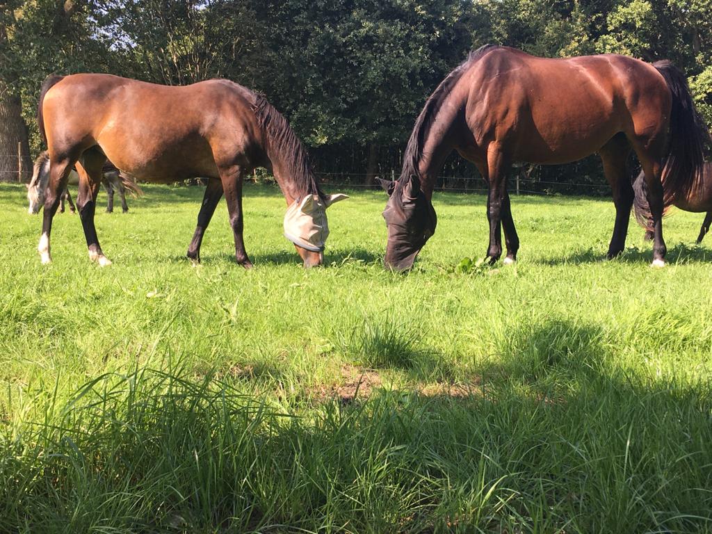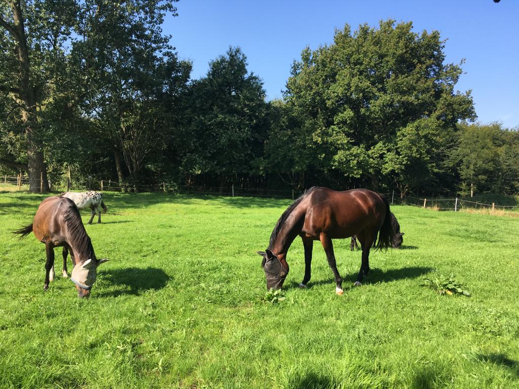 Es gibt einen Reitplatz und ein Roundpen und ausreichend Grünland.